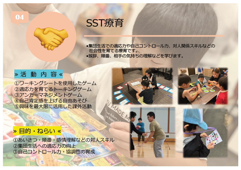 もちろん、それぞれのお子さまの現状を的確に把握したうえで「現段階でお子さまの成長にとって何が一番必要なのか」をご家族の方と一緒に考え、周囲が一体となって力を合わせながら楽しく学べる環境を提供していきます。