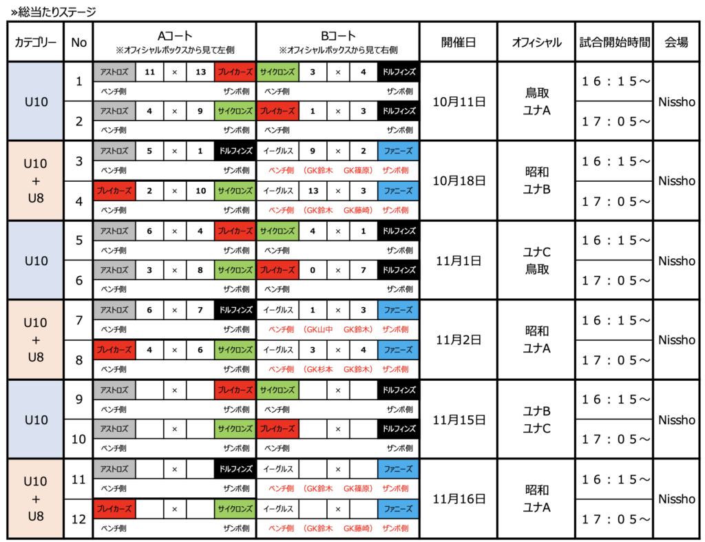 ☑️大会日程【予選リーグ・順位決定リーグ】