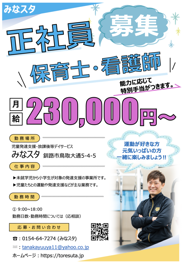 ☑️求人情報・スタップ募集(保育士・児童指導員)
